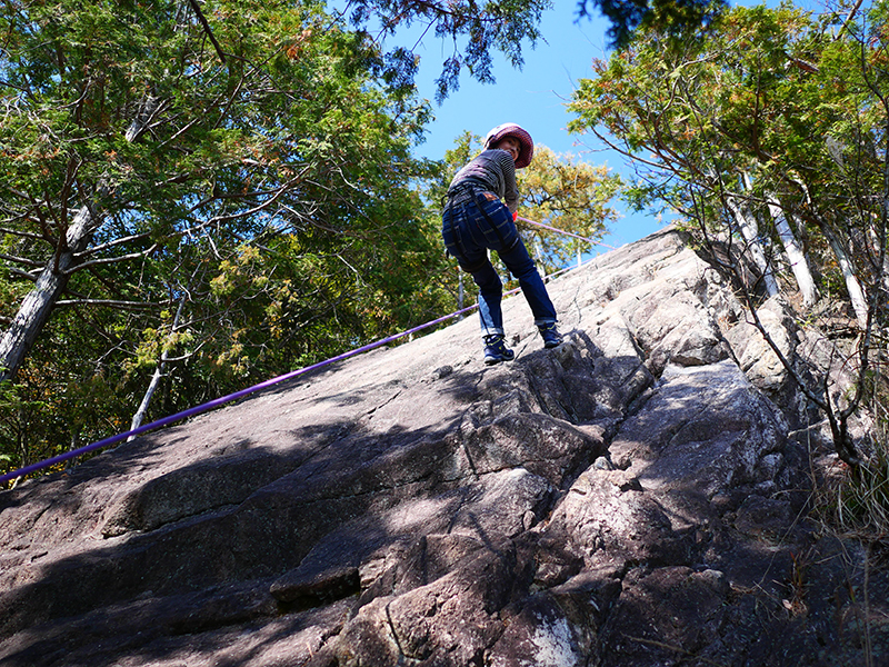 クライミングゲレンデとしても有名な、滋賀県大津市の獅子岩で実際にフリークライミングを体験できます。