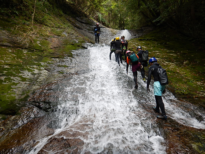 10:00 集合、受付。免責同意誓約書にサインをいただきます。ガイド車両の先導で20分移動。 10:30 着替え後、出発。 12:30 ゴールの大岩壁でランチ、スライダー。 15:00 スタート地点に到着。着替え後解散。 ※参加人数と水量により前後します。 ※当日の状況によって流れが変更になる場合がありますので、あらかじめご了承ください。